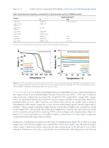 Table 1. Iongel electrolyte compositions containing 90 wt.% liquid electrolyte and 10 wt.% PEGDM crosslinker