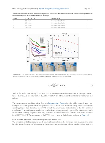 Table 1. Self-diffusion coefficients at different temperatures derived from PFG-NMR measurements and lithium transport numbers