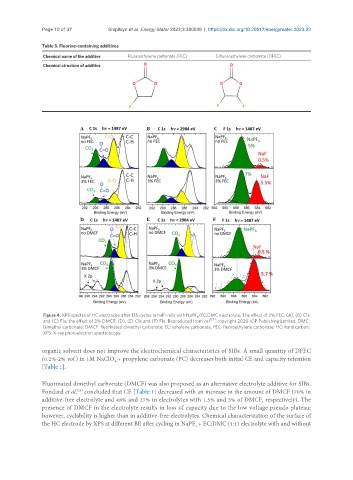 Figure 4. XPS spectra of HC electrodes after 135 cycles in half-cells with NaPF /EC:DMC electrolyte. The effect of 3% FEC: (A), (B) C1s