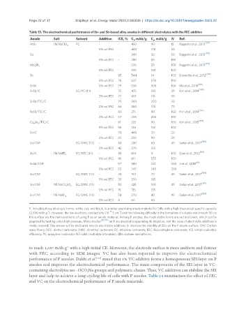 Table 13. The electrochemical performance of Sn- and Sb-based alloy anodes in different electrolytes with the FEC additive