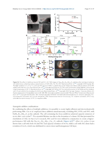 Figure 12. The effect of additives beyond FEC and VC. (A) TEM images of Na Ni Fe Mn O particles after working in batteries