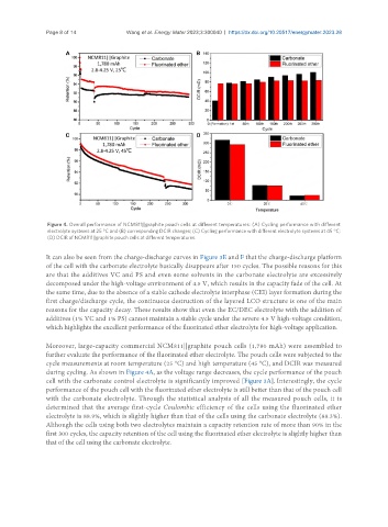 Figure 4. Overall performance of NCM811||graphite pouch cells at different temperatures: (A) Cycling performance with different