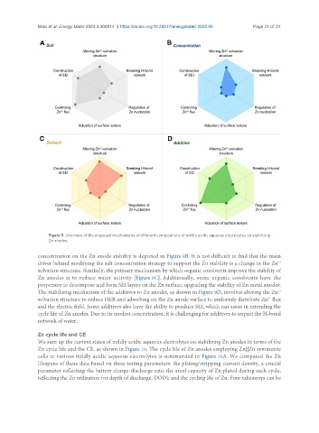 Zn anodes is to reduce water activity [Figure 9C]. Additionally, some organic cosolvents have the