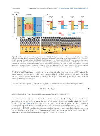 Figure 2. (A) Schematic open-circuit energy diagram for a Li|SSE|Li MyO battery system where μLi and μLi MyO represent the