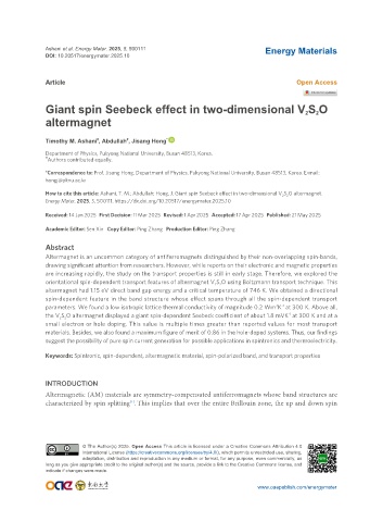 How to cite this article: Ashani, T. M.; Abdullah; Hong, J. Giant spin Seebeck effect in two-dimensional V S O altermagnet.