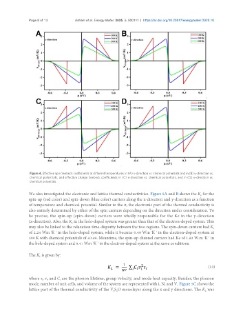 chemical potentials, and effective charge Seebeck coefficients in (C) x-direction vs. chemical potentials, and in (D) y-direction vs.