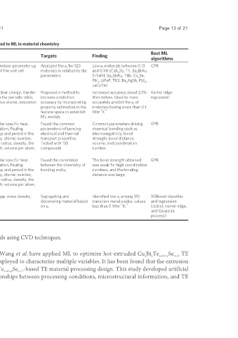 Table 1. The survey of this review refers to the descriptors, targets, and findings of the study related to ML in material chemistry
