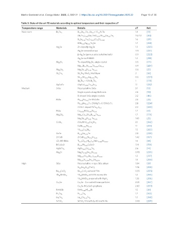 Table 3. State-of-the-art TE materials according to optimal temperature and their respective zT