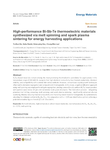 synthesized via melt spinning and spark plasma sintering for energy harvesting applications. Energy Mater. 2025, 5, 500127.