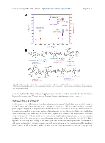 Figure 9. (A) Comparative analysis of the progress in electrical conductivity and PF of DPP-based n-type thermoelectric polymers
