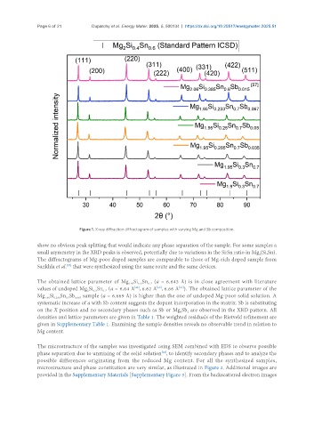 Figure 1. X-ray diffraction diffractogram of samples with varying Mg and Sb composition.