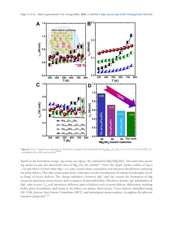 Figure 6. (A-C) Temperature dependence of thermal transport characterization for Ag Mg 1.8-x Zn Sb (x = 0, 0.01, 0.03 and 0.05), (D)