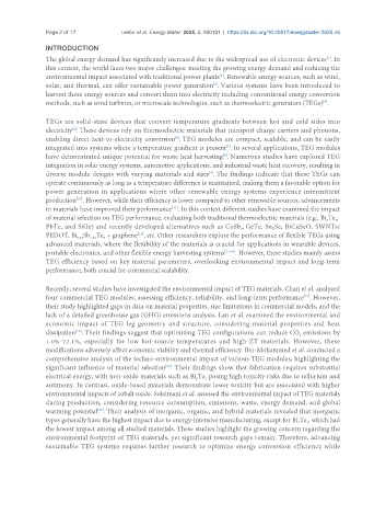 environmental footprint of TEG materials, yet significant research gaps remain. Therefore, advancing