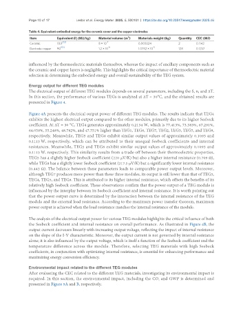 the ceramic and copper layers is negligible. This highlights the critical importance of thermoelectric material