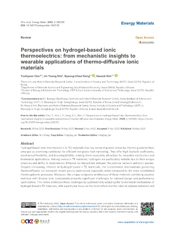 How to cite this article: Choi, Y.; Kim, J. Y.; Kang, B. C.; Kim, H. Perspectives on hydrogel-based ionic thermoelectrics: from