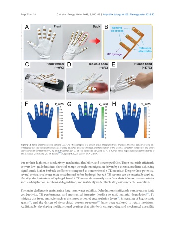 Figure 12. Ionic thermoelectric sensors (2). (A) Photographs of a smart glove integrated with multiple thermal sensor arrays. (B)