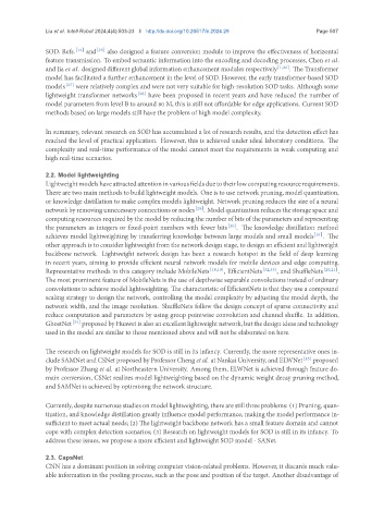 cope with complex detection scenarios; (3) Research on lightweight models for SOD is still in its infancy. To