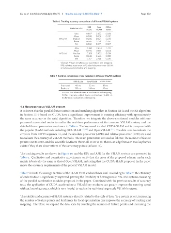 Table 6. Tracking accuracy comparison of different VSLAM systems