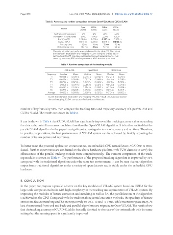 Table 8. Accuracy and runtime comparison between OpenVSLAM and CUDA-SLAM