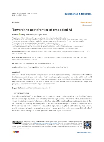 How to cite this article: Fan, R.; Sun, M.; Giakos, G. Toward the next frontier of embodied AI. Intell. Robot. 2025, 5, 859-63.