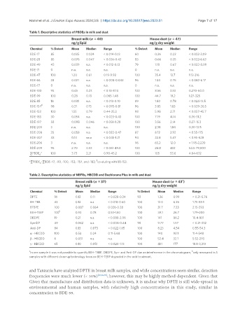 Table 2. Descriptive statistics of NBFRs, HBCDD and Dechlorane Plus in milk and dust