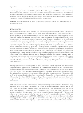 not impact the concentrations of these flame retardants in milk. Additionally, other maternal characteristics [e.g.,