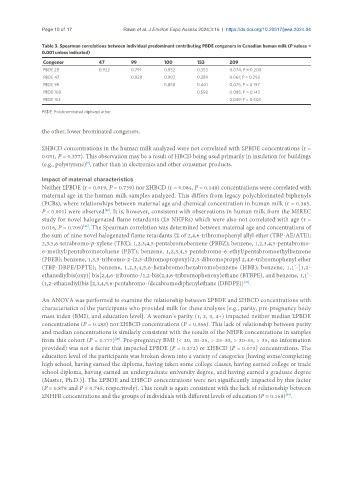 Table 3. Spearman correlations between individual predominant contributing PBDE congeners in Canadian human milk (P values <