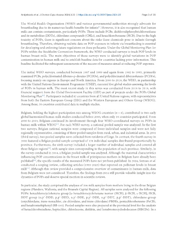 human breast milk. The main objectives of these surveys were to identify global variations in POP