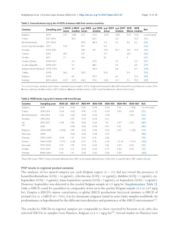 Table 2. Concentrations (ng/g lw) of OCPs in human milk from various countries