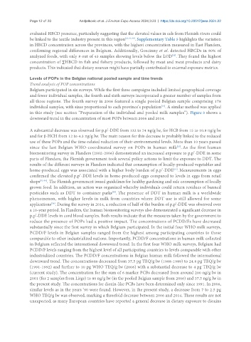2001 (for 2 samples from Liège) to 80 ng/g lw (in the pooled Belgian sample from 2006) and 37.5 ng/g lw in