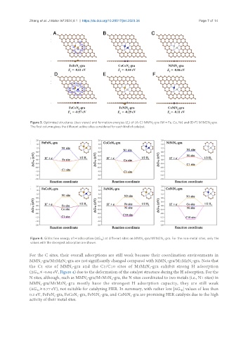 Figure 4. Gibbs free energy of H adsorption (ΔG ) at different sites on MMN -gra/M1M2N -gra. For the non-metal sites, only the