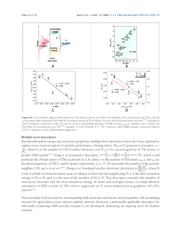 2020, American Chemical Society; (C) and (D) Linear relationships between ICOHP and ΔG N2-NNH on TM@N -G and TM@g-C N.