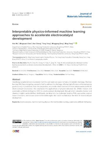How to cite this article: Wu, H.; Chen, M.; Cheng, H.; Yang, T.; Zeng, M.; Yang, M. Interpretable physics-informed machine