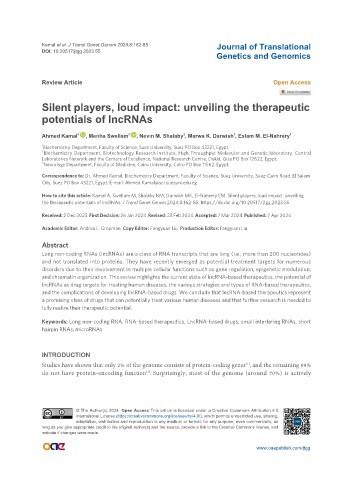 Kamal et al. J Transl Genet Genom 2024;8:162-85 Journal of Translational
