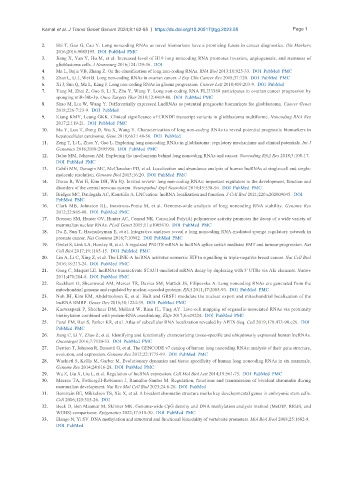 6. Xi J, Sun Q, Ma L, Kang J. Long non-coding RNAs in glioma progression. Cancer Lett 2018;419:203-9. DOI PubMed