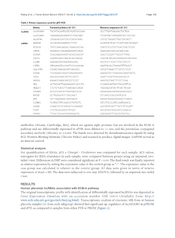 LncPCDH10 TGAGGGAACAGGTTCTCTATGGT TGTGTGGTTCTGATGTGTCTCCTAC