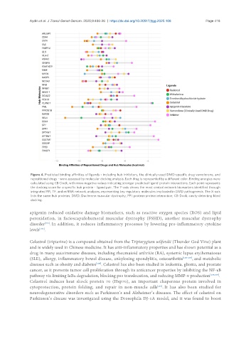 Figure 4. Predicted binding affinities of ligands - including hub inhibitors, the clinically used DMD-specific drug vamolorone, and