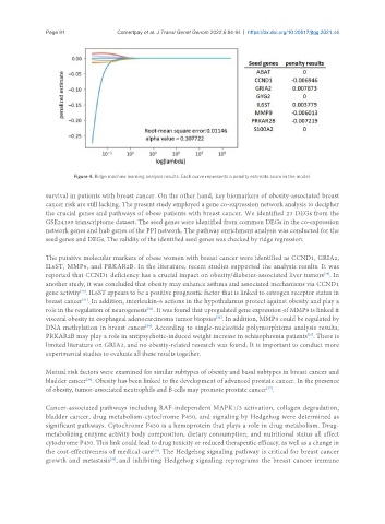 Figure 4. Ridge machine learning analysis results. Each curve represents a penalty estimate score in the model.