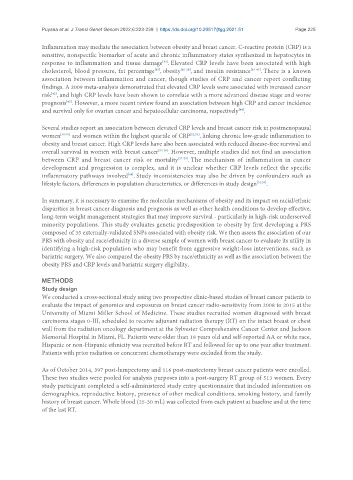 obesity and breast cancer. High CRP levels have also been associated with reduced disease-free survival and