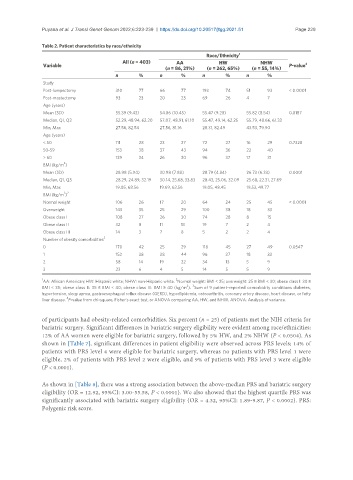 12% of AA women were eligible for bariatric surgery, followed by 5% HW, and 2% NHW (P < 0.0504). As