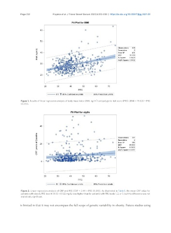 Figure 1. Results of linear regression analysis of body mass index (BMI, kg/m ) and polygenic risk score (PRS). [BMI = 19.620 + PRS