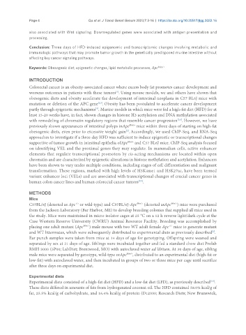 Keywords: Obesogenic diet, epigenetic changes, lipid metabolic processes, Apc Min/+