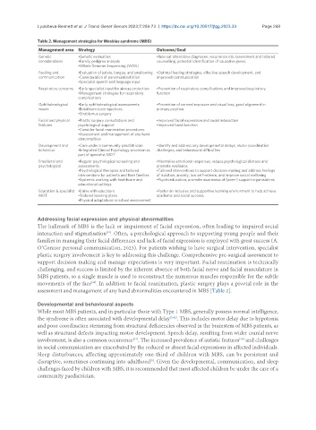 Table 2. Management strategies for Moebius syndrome (MBS)