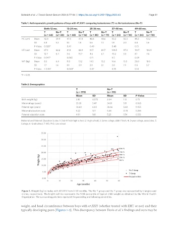 Table 1. Anthropometric growth patterns of boys with 47,XXY: comparing testosterone (T) vs. No testosterone (No-T)