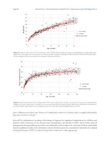 Figure 3. Head Circumference (cm) in Males with 47,XXY from 0-60 months. The No-T group and the T group are represented by