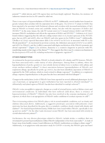 There is one report of hypermethylation of PM20D1 in PD . Additionally, several studies have focused on