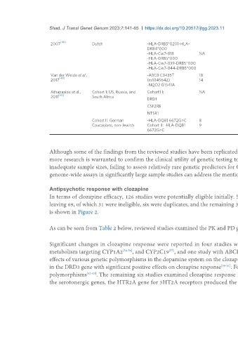 in the DRD3 gene with significant positive effects on clozapine response [59-61] . Four studies reported significant findings between clozapine response and DRD2