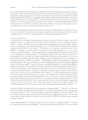 analysis . In addition, a review reported correlations between HTR2A variants 102-C, -1438-G, and