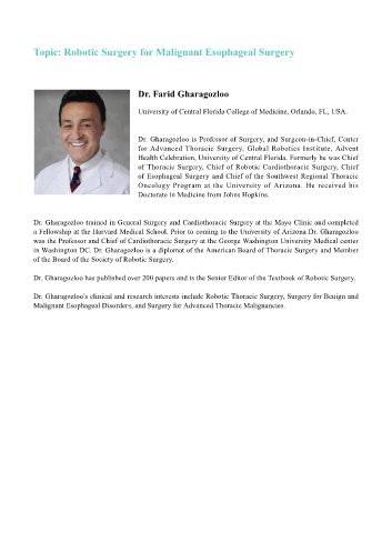 in Washington DC. Dr. Gharagozloo is a diplomat of the American Board of Thoracic Surgery and Member
