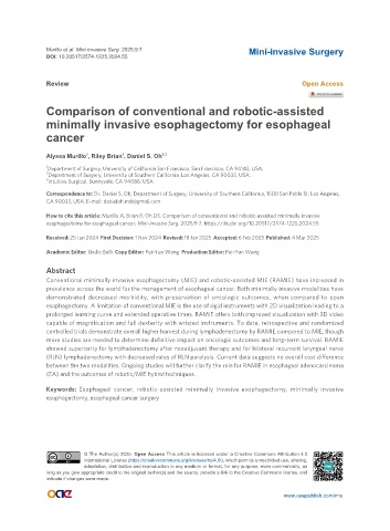 How to cite this article: Murillo A, Brian R, Oh DS. Comparison of conventional and robotic-assisted minimally invasive